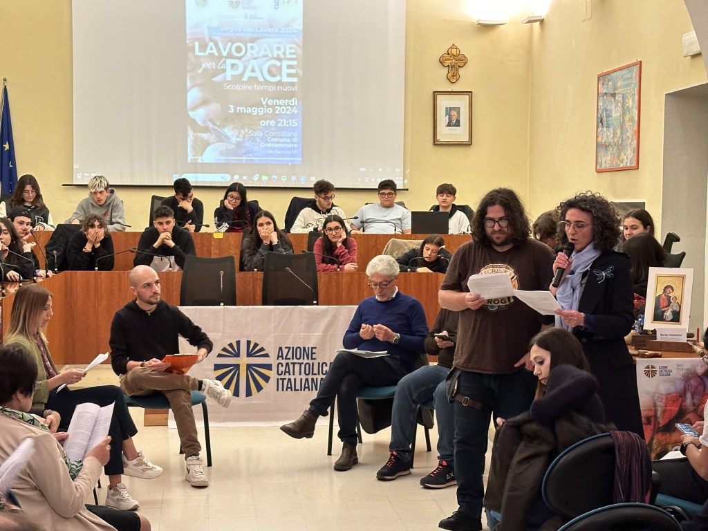 Lo scorso 3 maggio, alle ore 21:15, in occasione della festa di San Giuseppe lavoratore, il MLAC della diocesi di San Benedetto del Tronto, insieme al settore Giovani, ha vissuto la veglia di preghiera “Lavorare per la pace”, presso la Sala Consiliare del Comune di Grottammare, luogo di lavoro per eccellenza in cui si prendono decisioni al servizio del bene comune.