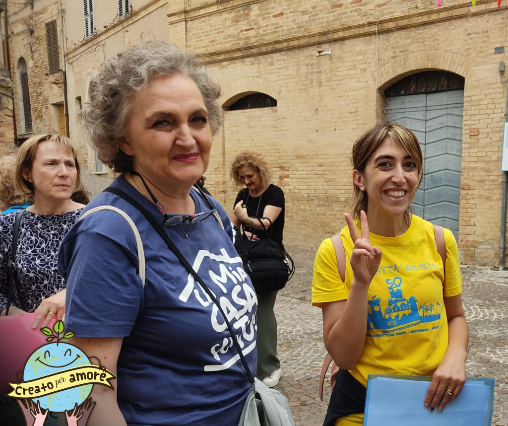 Il pomeriggio è iniziato con il lancio del tema della giornata: la cura del creato e l’attenzione verso i luoghi che ci circondano, presentato attraverso le battute di una simpatica scenetta tra un nonno nostalgico dei vecchi tempi, e del suo paese “di una volta”, e un nipote curioso di scoprire questa bellezza perduta; bambini e ragazzi si sono poi divisi in piccoli gruppi (cercatori i primi ed avventurieri i secondi) e hanno iniziato a “brulicare” per le vie del piccolo borgo medievale, riempiendolo di voci, colori e risate. In questa fase i più piccoli hanno partecipato a giochi che, attraverso alcune parole chiave come: RIFIORIRE, SENTIRE, TRAMANDARE, GIOCARE, CONDIVIDERE, hanno permesso loro di calarsi pienamente nella tematica della festa e di scoprire l’importanza di mantenere vive le tradizioni e di valorizzare la natura che ci circonda. I ragazzi delle medie hanno invece completato una “golosa” caccia al tesoro, terminata con la visita alla suggestiva fortezza medievale che domina il centro storico.