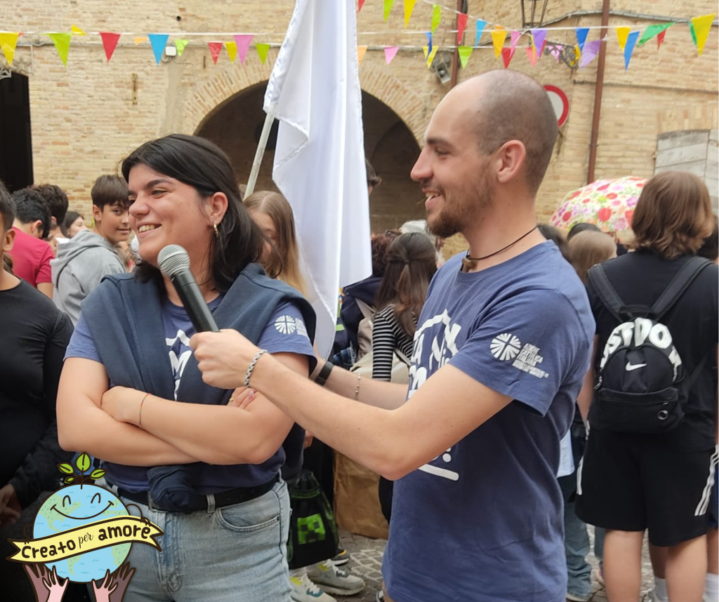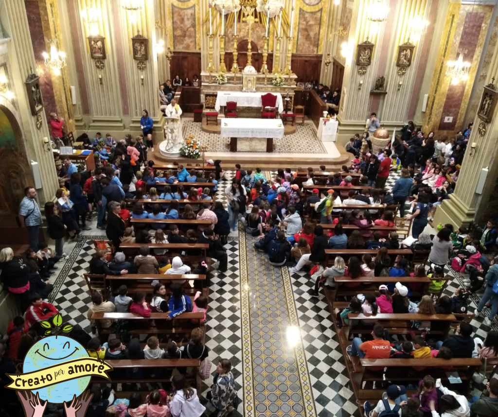 Concluse le attività, ci siamo ritrovati tutti insieme in Piazza San Nicolò, dove ci siamo collegati in diretta con lo Stadio Olimpico di Roma dove si stava svolgendo la GMB con il Papa e abbiamo ascoltato le sue parole e le sue risposte alle domande dei bambini presenti.