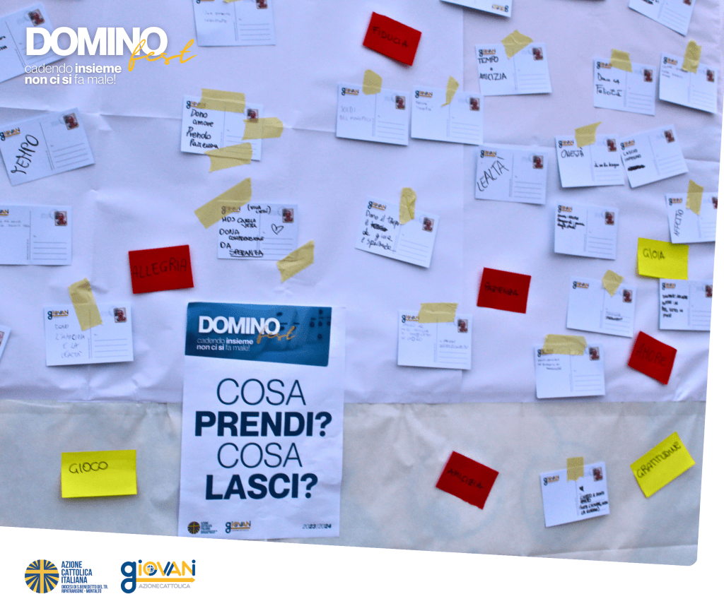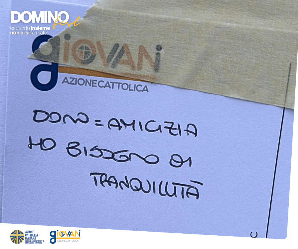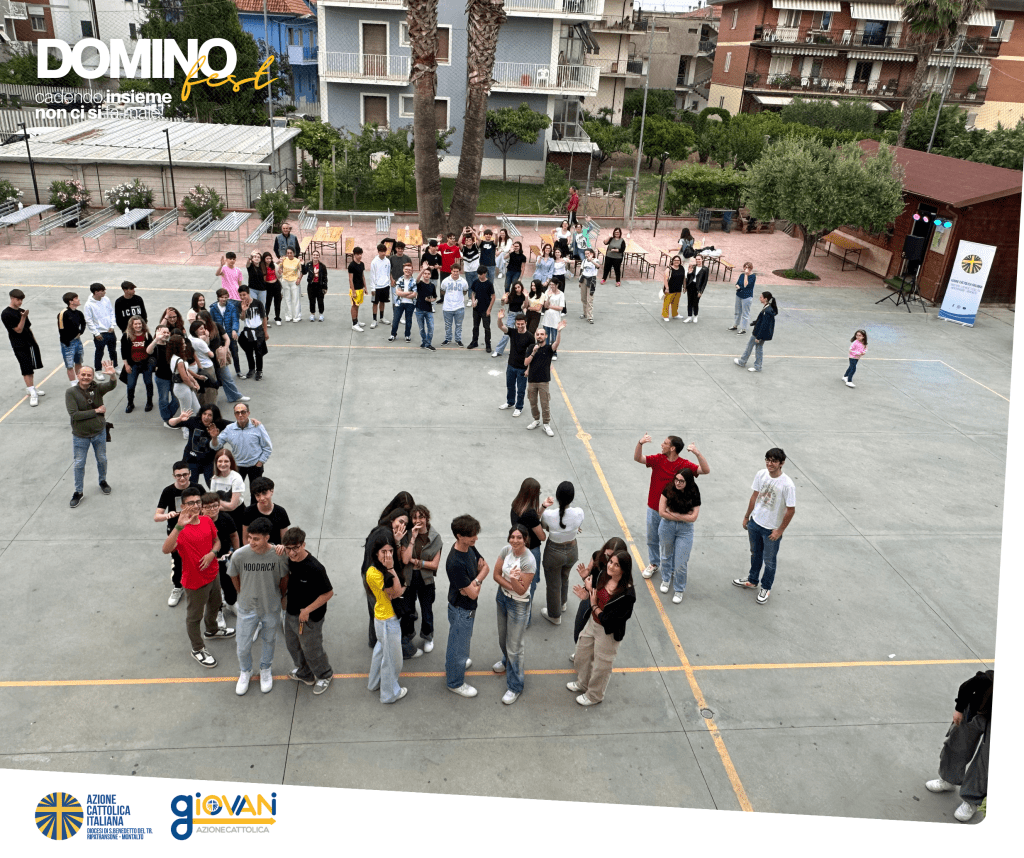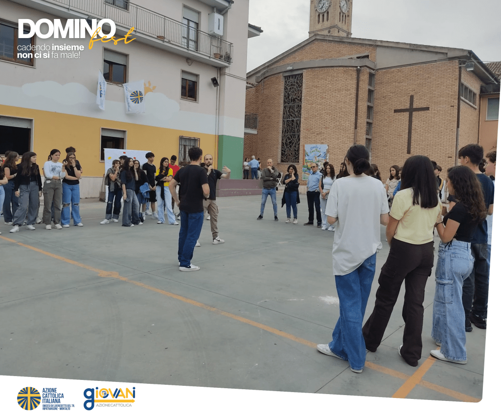 Come il SÌ di Maria, che è stato “l’effetto domino” per la nostra salvezza, così anche loro, simbolicamente, hanno espresso il desiderio di “mettersi in gioco” e di accogliere le sfide della vita sistemando a terra i propri tasselli di legno, alle giuste distanza e posizione di quello dell’amico precedente. Questi legnetti, cadendo uno dopo l’altro, è stata la silenziosa preghiera a Maria per chiederle questo coraggio di perdere l’equilibrio e far cadere ogni paura. Come ha detto don Roberto: “cadere per Maria non vuol dire sbagliare, ma accettare una prova e rialzarsi con l’aiuto di Dio.”