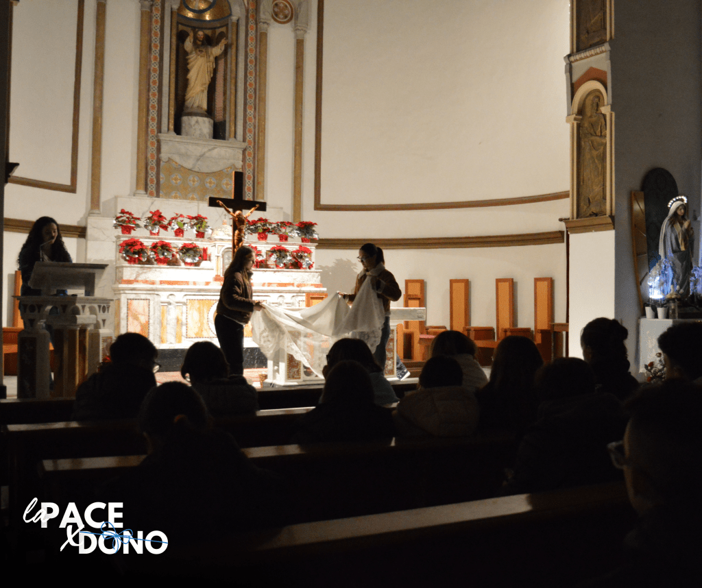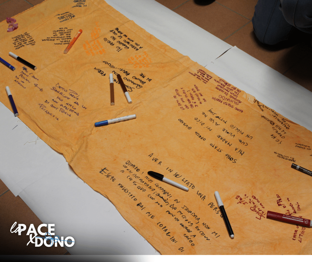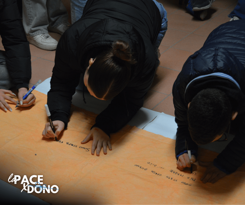 Dopo aver riportato, con un’attività, le loro esperienze su un lenzuolo, i giovanissimi hanno sperimentato lo strappo, il senso di lacerazione che si apre quando feriamo gli altri e della solitudine che si può provare se non si è in grado di riconciliarsi.