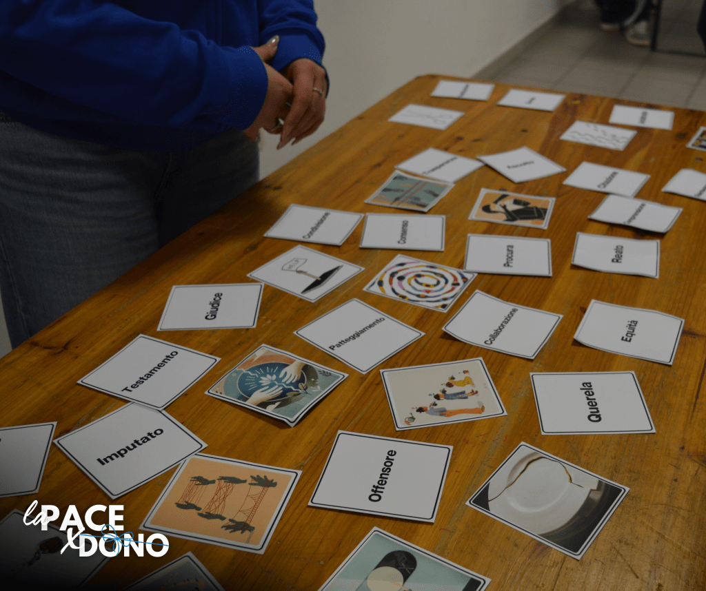 Per far entrare i giovanissimi nel vivo di questo argomento abbiamo scelto una modalità un po’ diversa dal solito, decidendo di offrire loro, al posto della classica spiegazione frontale e dettagliata della tematica, la testimonianza di una donna la cui vita è stata sconvolta da uno strappo improvviso e profondamente lacerante e di come lei sia riuscita a trovare nella riconciliazione una via per leggere, vivere e trasformare quel dolore senza esserne distrutta.