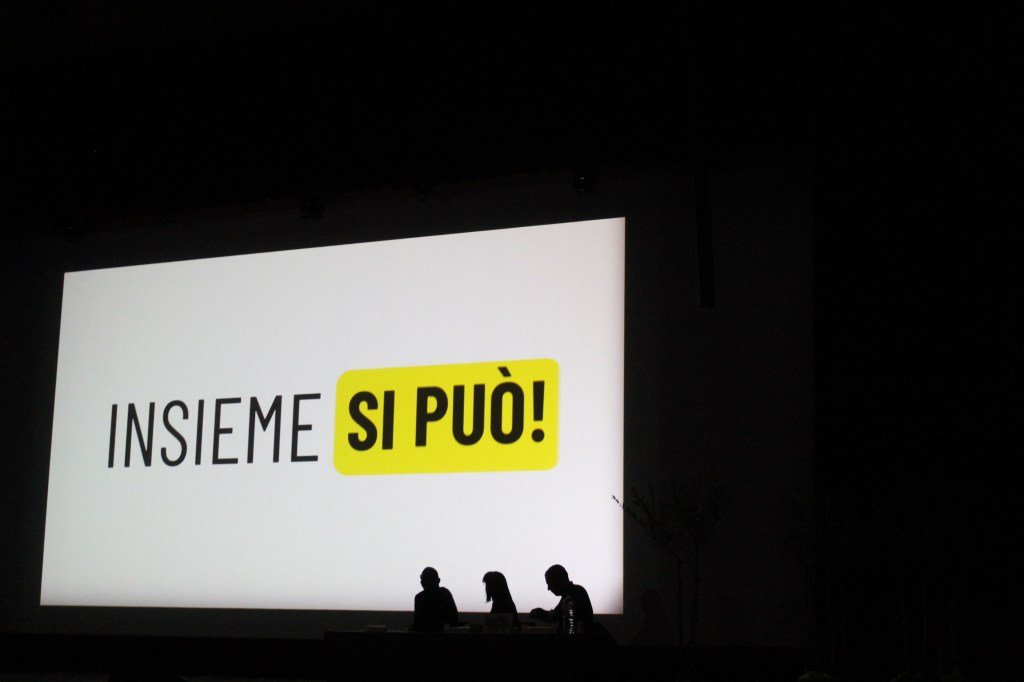 Ma la festa è iniziata fuori, dal primo pomeriggio, quando le aree intorno alla struttura del cinema si sono riempite di fiumi di ragazzi che sono arrivati e che con la loro allegria hanno “cantato” e “ballato” la Pace, l’hanno “costruita” con scene scritte o disegnate come in un film e inventata con parole nuove e fantasiose.