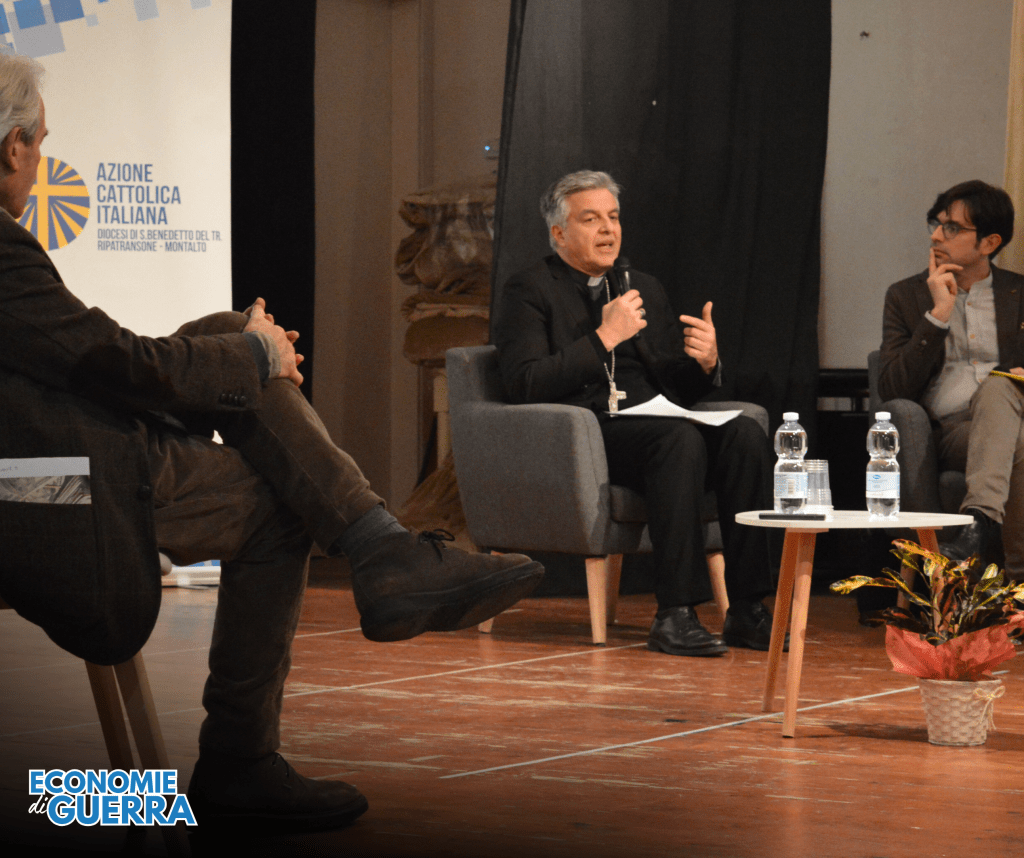 La tavola rotonda ha visto come protagonisti il vescovo Mons. Gianpiero Palmieri – anche in qualità di delegato della Conferenza Episcopale Marchigiana per i problemi sociali e il lavoro – e il Prof. Fabrizio Battistelli, presidente dell’Istituto di Ricerche Internazionali Archivio Disarmo – IRIAD. Hanno dialogato con loro il Segretario del Movimento Lavoratori diocesano Andrea Persiani.