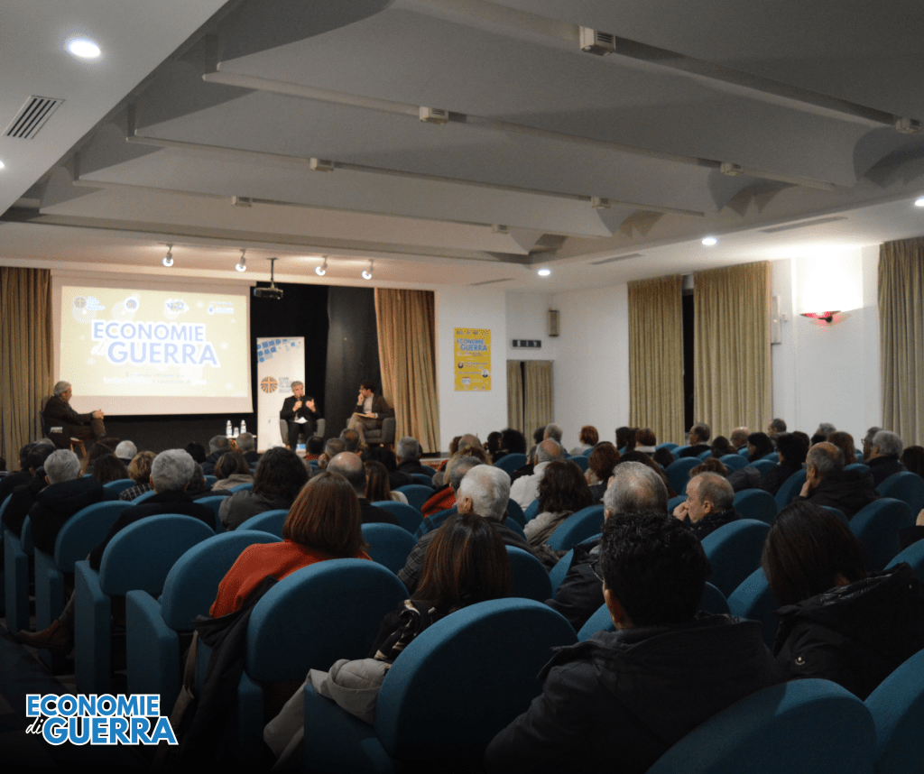 Nella seconda parte dell’incontro, si è cercato di fare luce circa la posizione della Chiesa nei confronti dell’economia di guerra. Il vescovo Palmieri, dunque, ha donato ai partecipanti parole e illustrato prospettive di speranza. Di fronte a questo grande armamento dell’umanità cerchiamo di disarmare i cuori. Papa Francesco, nell’ultimo messaggio per la Pace, afferma: “La vera pace potrà nascere solo da un cuore disarmato”. Il problema è che si fa fatica a incontrare cuori disarmati, perché noi stessi non siamo più disponibili a disarmare i nostri cuori – ha affermato il vescovo Palmieri. Questo non favorisce di certo un modo di stare insieme positivo, arricchente, pacifico. Si è fatto riferimento anche al condono permanente del debito dei paesi poveri e alla creazione della Carta finanziaria globale fondata sulla solidarietà e sull’armonia tra i popoli. Per realizzare questa nuova architettura finanziaria, noi come persone, associazione e Chiesa tutta possiamo parlarne, discuterne, così da diffondere idee e pensieri.