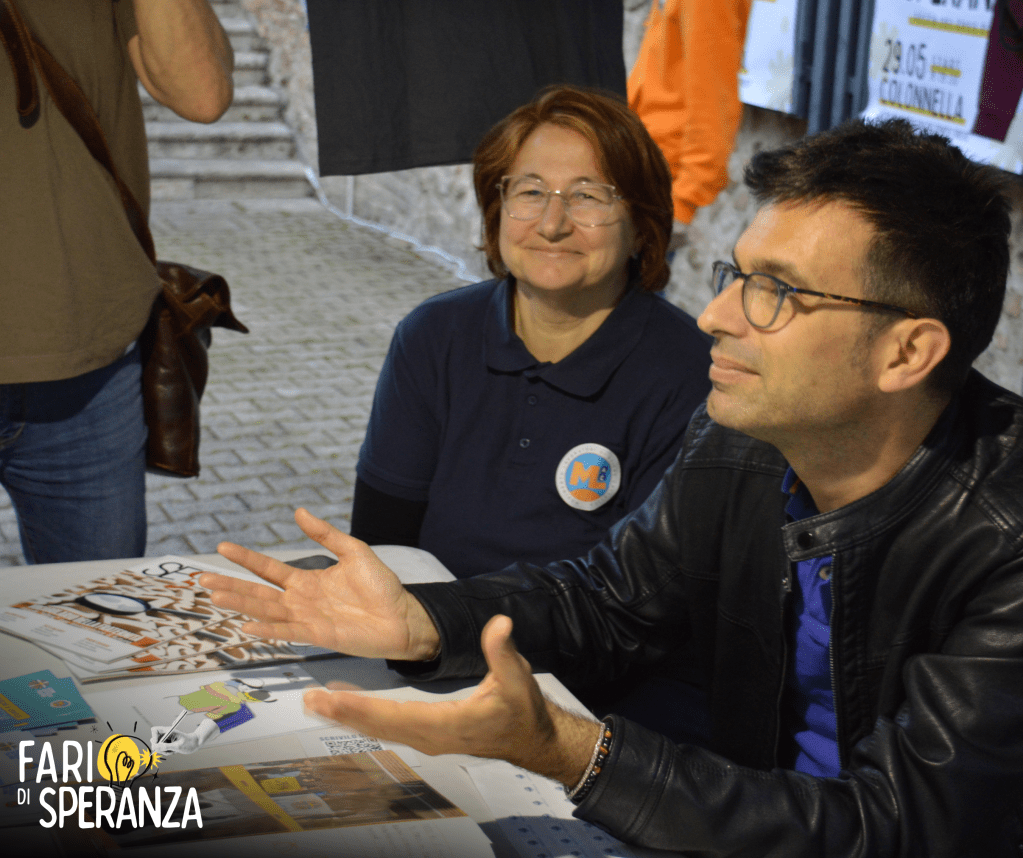 Proprio per approfondire il significato di quest’ultima, nella concretezza della loro quotidianità, appena arrivati i ragazzi si sono immersi in un “villaggio della Speranza”, composto da stand dove hanno potuto partecipare a semplici attività attraverso le quali ascoltare e conoscere storie e realtà importanti. Fondamentale in questa fase è stata la presenza di due associazioni che quest’anno hanno condiviso il nostro cammino: Omphalos e Libera. La prima di queste ha presentato ai nostri giovani, grazie alla partecipazione di Massimo e alla collaborazione del MLAC, il progetto “Casa mia”, che si pone l’obbiettivo di creare un luogo per accompagnare all’autonomia famiglie e ragazzi che vivono la condizione de disturbo dello spettro autistico.