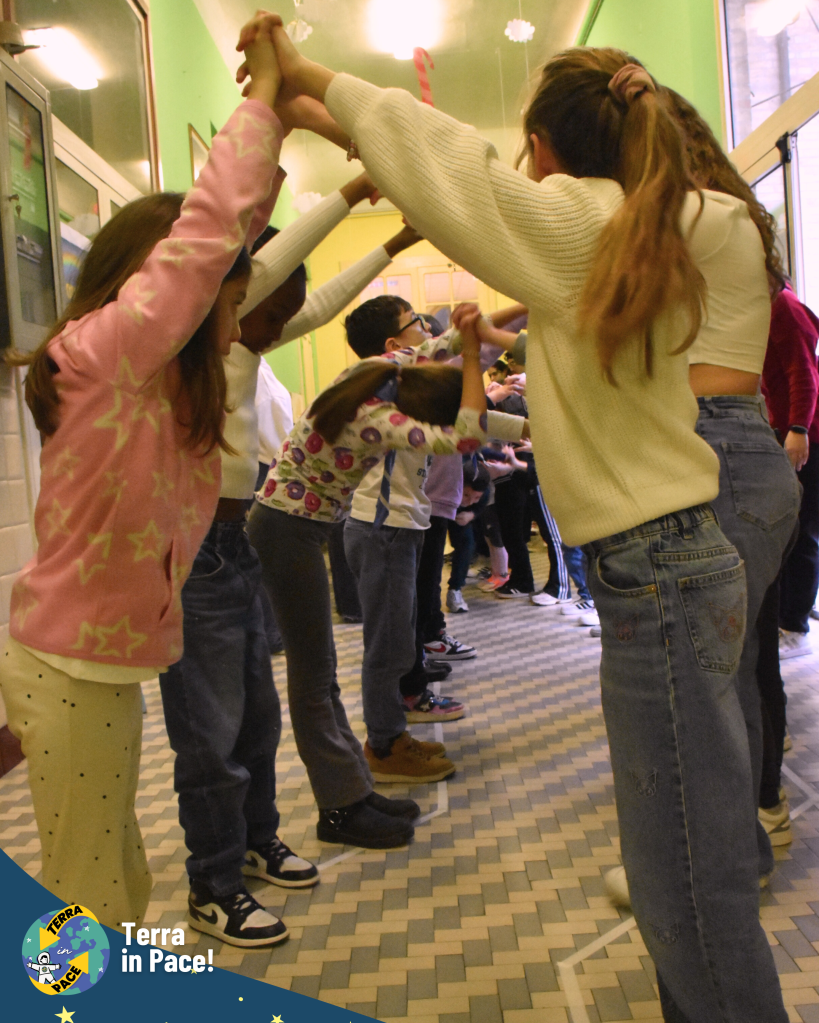 Divisi per fasce d’età, tra diverse sedi e palestre limitrofe, i partecipanti hanno ascoltato la testimonianza della bellezza dello sguardo dall’alto: quella visione tipica degli astronauti che, dall’orbita spaziale, non vede frontiere ma chiede semplicemente di fare squadra e di cooperare per il bene e la sopravvivenza della grande famiglia umana. Attraverso il gioco, hanno conosciuto il “Messaggio per la LIX Giornata Mondiale della Pace” di Papa Leone XIV, imparando a: